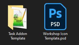 Once you have done that you are ready to hit save. You want to put your icon in the same folder as 'Task Addon Template', not inside it! Steam workshop needs the icon file to be a .jpg so make sure you save it as the right format.
